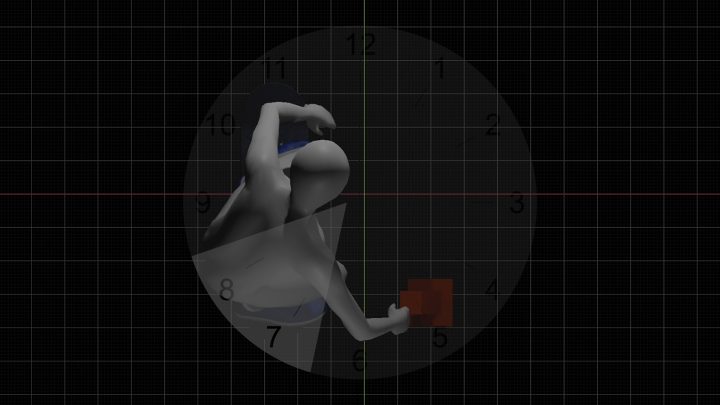 Here, we have a skateboard on a direction indicator that looks like a massive clock. And we are going to drop this white ball on the heel side pocket of the board.