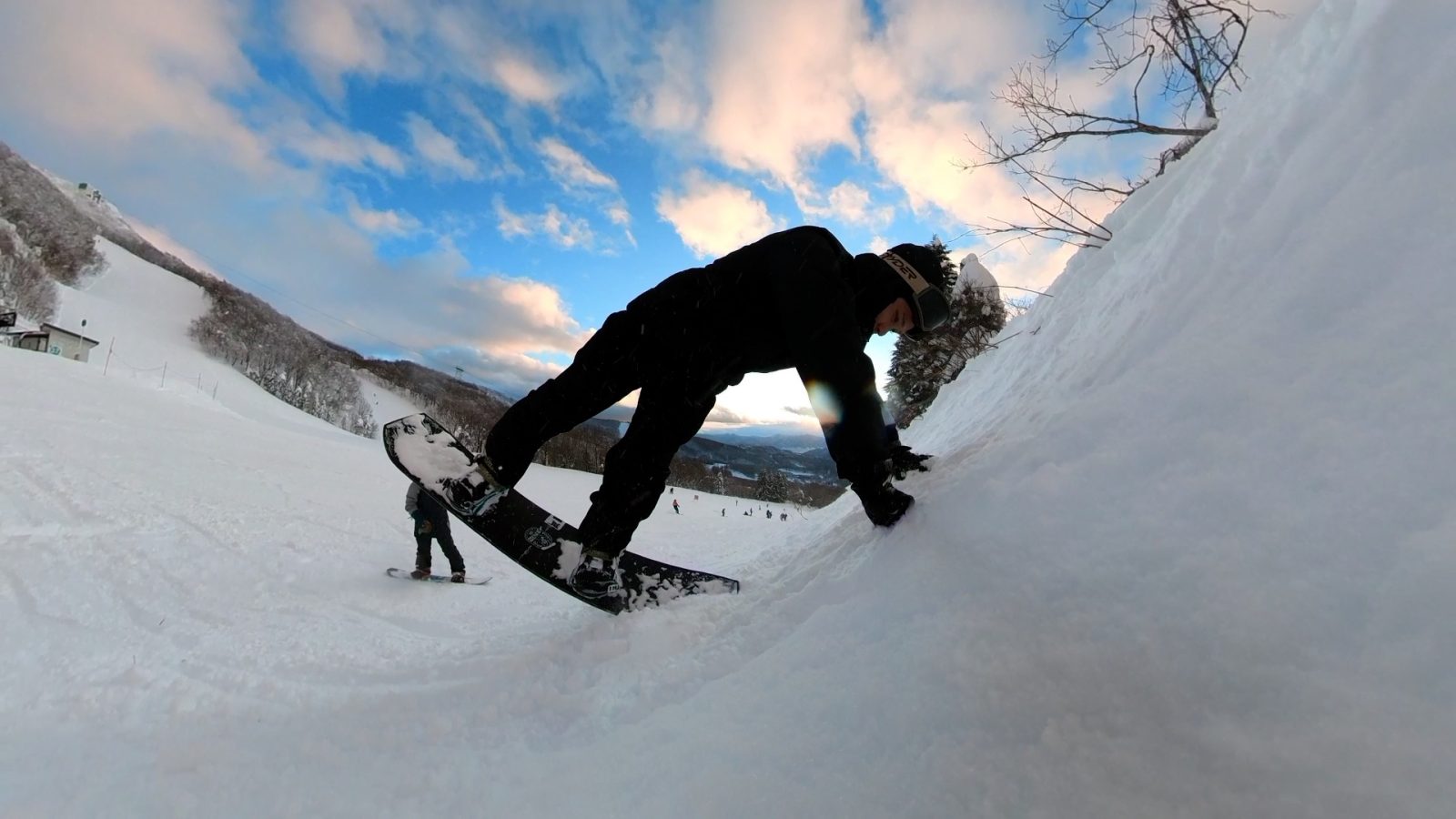 そのままだと、その力によって体は前方につぶされてしまいます。しかし、体を前に倒すことでボードがしなり、板全体に反発力が生まれます。スノーボードは大きなバネのようなものです。曲げれば、元に戻ろうとして跳ね返ります。この考え方を使えば、腕力だけで板を持ち上げる必要はありません。板をしならせれば、板自身が上に跳ね上がってくれるのです。あなたがやるべきことは、板が頭の上へ来るように進行方向を導いてあげることに近いと言えます。